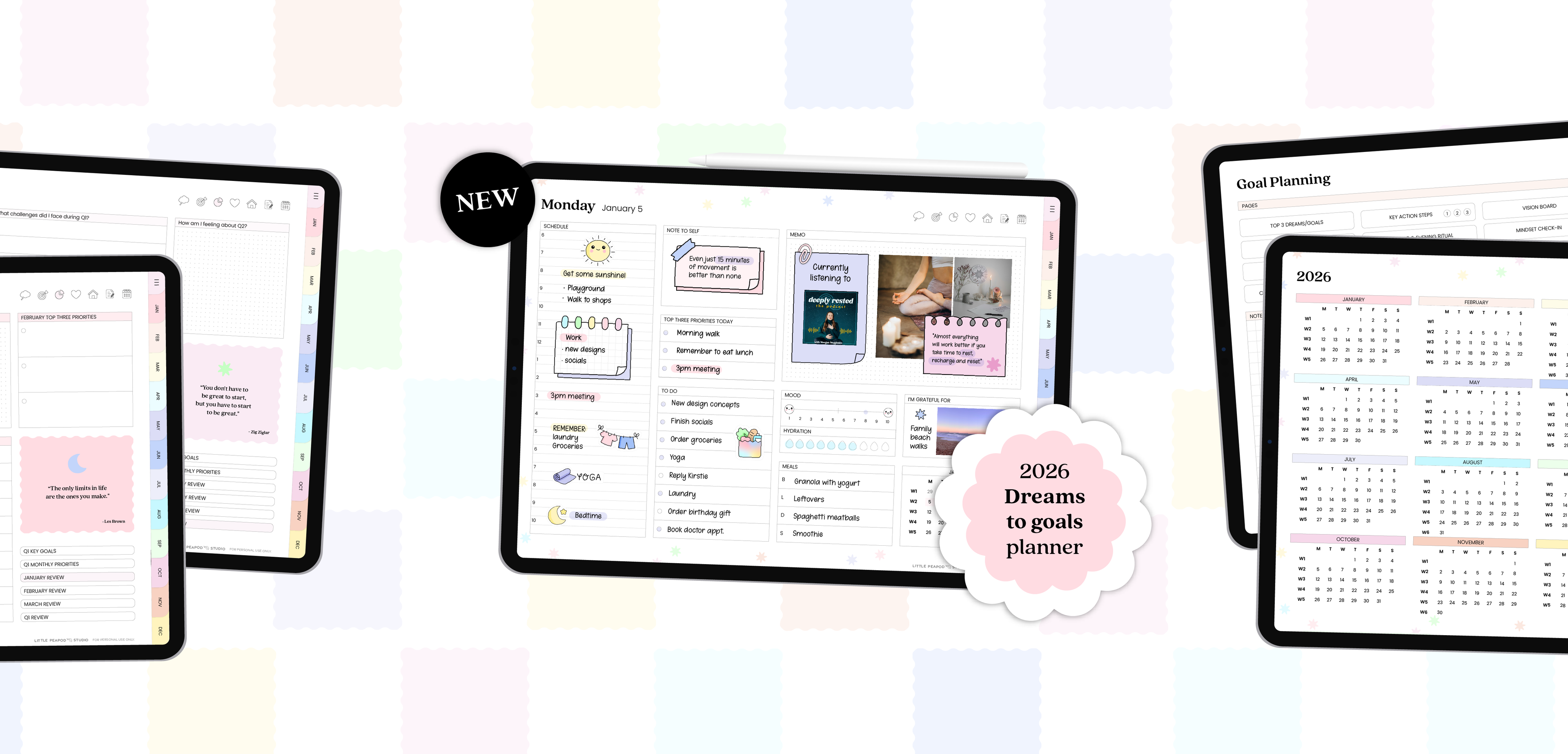 The Dreams to Goals Planner was designed to help you uncover your big dreams and turn them into smaller achievable tasks with practical goals setting and planning. With self-reflections and activities based on psychological research (such as identifying values and limiting beliefs), you can work through the mental and emotional challenges that we all face on the personal journey of reaching our potential and living a life we love.