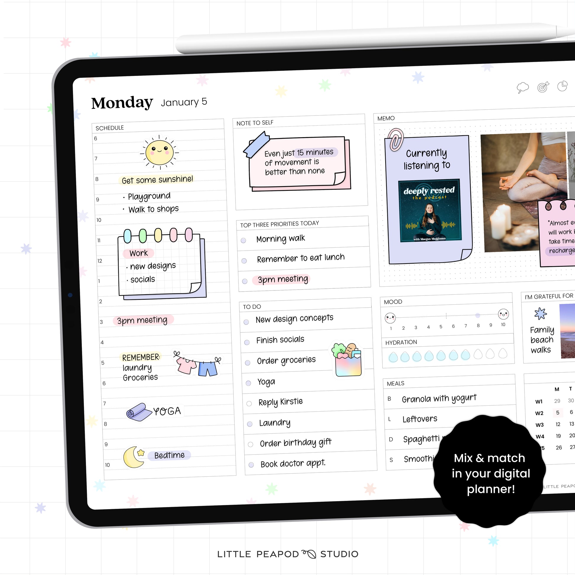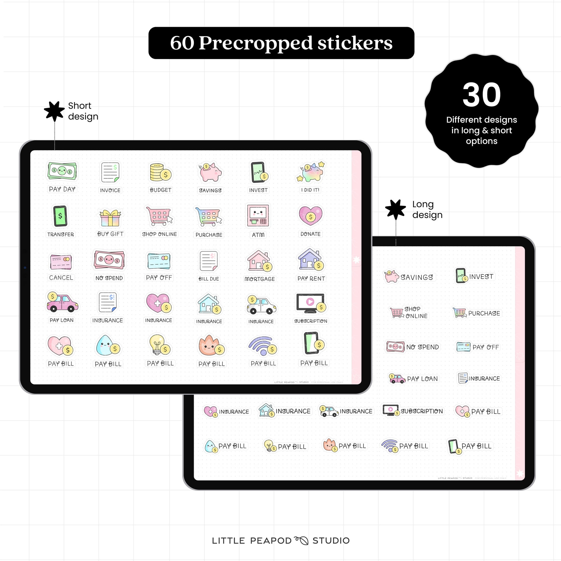 60 digital stickers pack for Goodnotes, Notability, Penly and other apps. Illustrations are hand drawn and thoughtfully organised making them perfect for everyday digital planning! Images and video show all the stickers included.